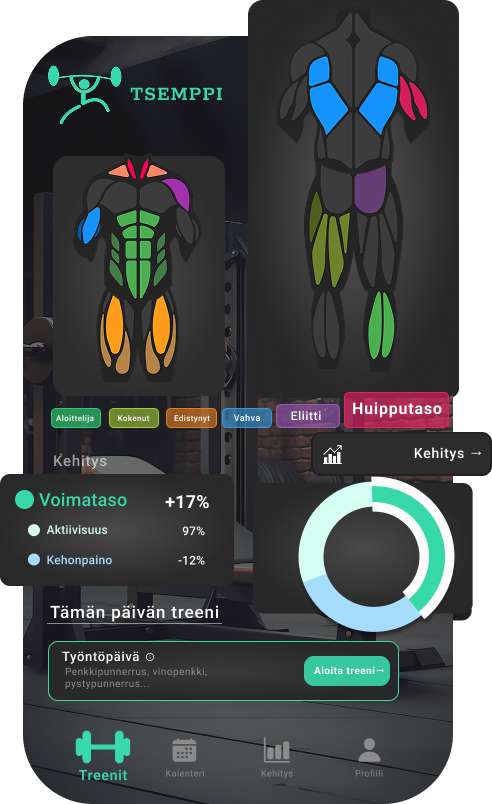Voit kirjata omat treenit Tsemppiin ja seurata kehitystä. AI voi ehdottaa parannuksia, mut sinä päätät. Sovellus on työkalusi, ei määrääjäsi.